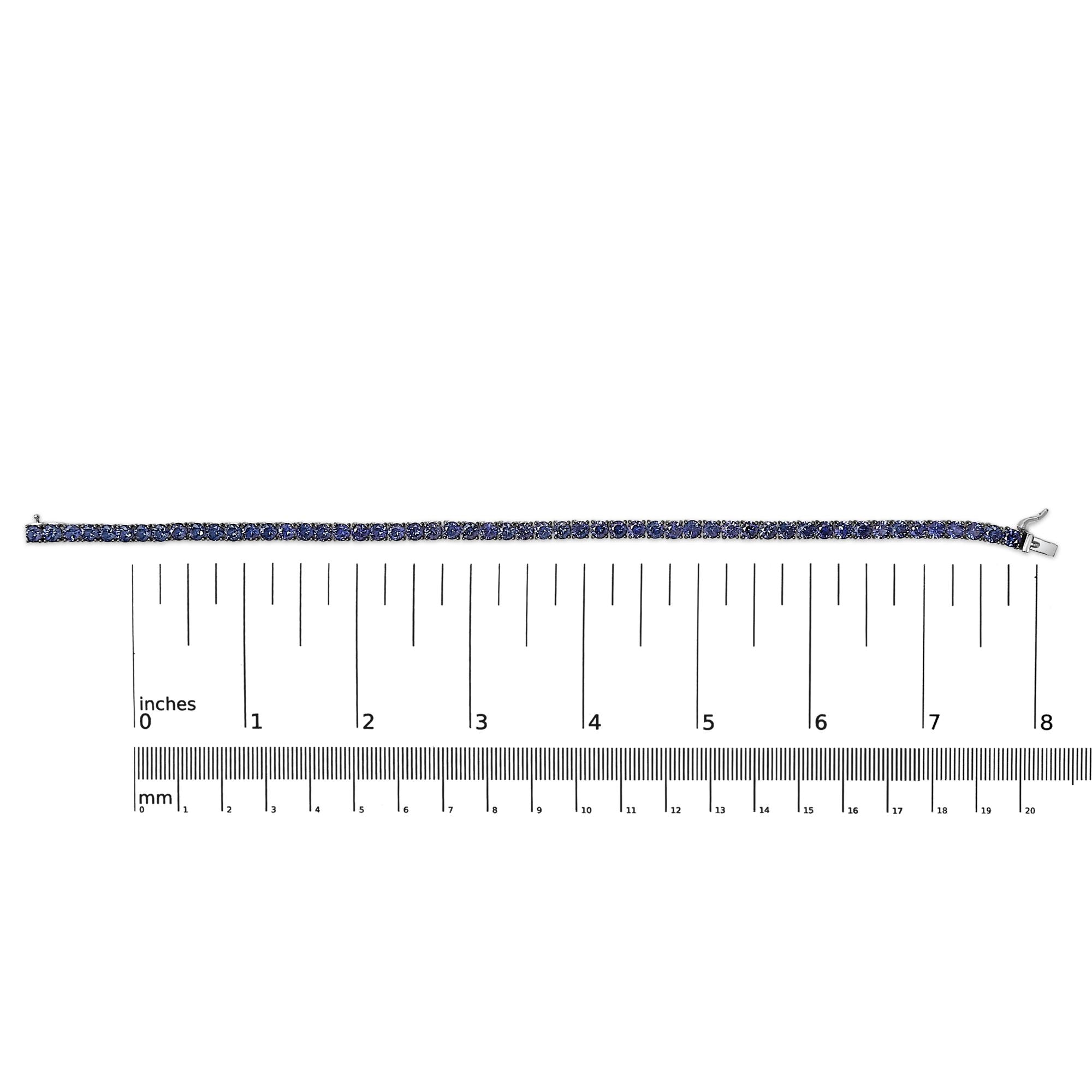 Immerse yourself in the exquisite elegance of this .925 sterling silver bracelet, an epitome of sophisticated craftsmanship designed for the modern man. Rhodium-plated to enhance durability and prevent tarnish, this piece promises an enduring brilliance. Flaunting a classic tennis bracelet silhouette, it is meticulously adorned with lab-created, color-treated blue sapphires that captivate with their vibrant hue. Each 4x4 mm gemstone is precisely nestled in a 4-prong setting with distinctive black rhodium accents, creating a striking visual contrast that dances with light. Measuring 8.5 inches, it drapes gracefully around the wrist, offering a comfortable fit and an unmistakable statement of style. This masterpiece not only embodies luxury but also celebrates a refined aesthetic with its bold gemstone presence and meticulous attention to detail.