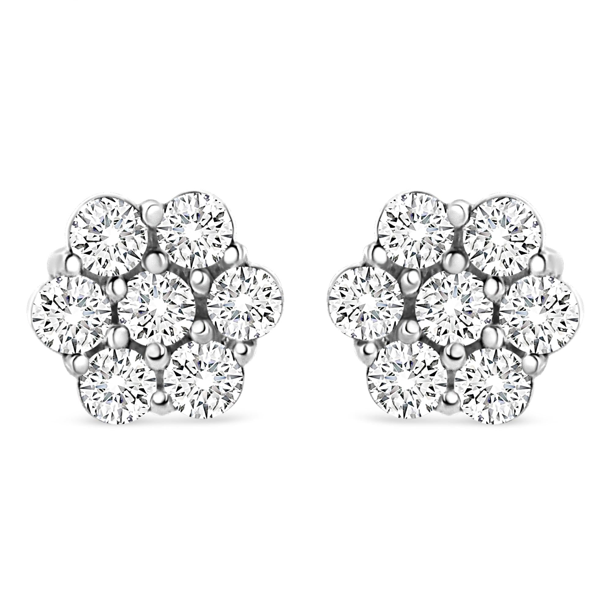 The perfect piece for every outfit. These gorgeous floral studs are designed with 7 natural, round-cut diamonds in an elegant prong setting. These earrings are embellished in the finest 14k white gold that will sparkle on your ears. Add this to your jewelry collection and you won't regret it. This piece comes with a screw-back mechanism for a more secure fit.