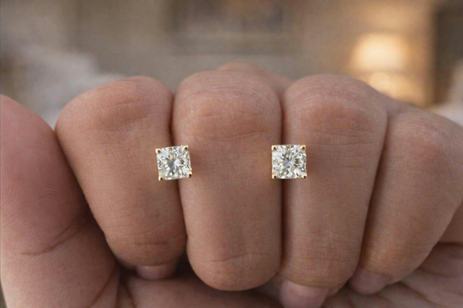 Elevate your elegance with these IGI certified solitaire stud earrings. Graced with the brilliance of 14K yellow gold natural diamonds, these earrings are a testament to your refined taste. Each earring boasts a mesmerizing princess-cut diamond, carefully set in a secure and classic 4-prong setting. With a total diamond weight of 1/4 carat, these gems radiate a subtle yet enchanting sparkle. The N-O color grade adds a unique warmth, while the I1-I2 clarity ensures the natural beauty of the diamonds shines through. What sets these earrings apart is their International Gemological Institute certification, a mark of authenticity and quality. With push-back findings, they offer both comfort and security. These solitaire stud earrings are the embodiment of simplicity and sophistication, making them a timeless addition to your collection. Whether for yourself or as a gift, they symbolize enduring beauty and style.