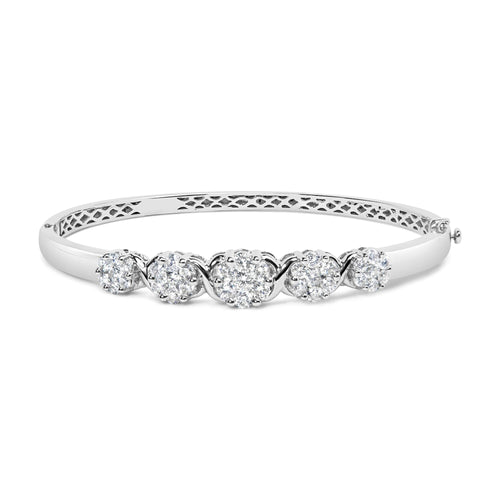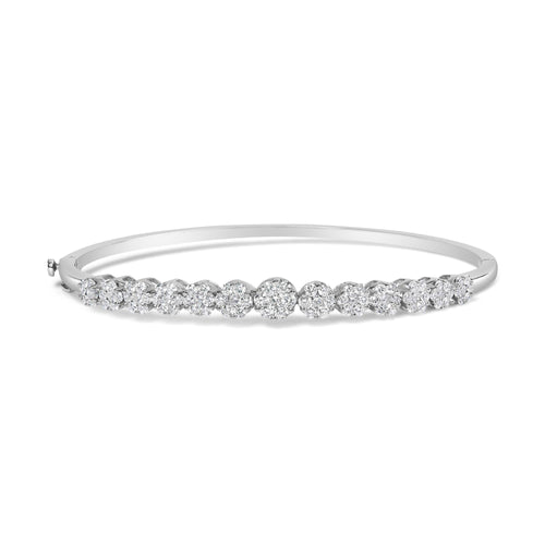 14K White Gold 2 1/2 Cttw Diamond Graduating Floral Cluster Bangle Bracelet (H-I Color, SI1-SI2 Clarity) - Fits Wrists up to 7.25"