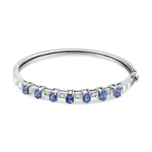 14K White Gold 5 MM Oval Blue Tanzanite and 1/4 Cttw Diamond Bangle (H-I Color, VS2-SI1 Clarity) - Fits wrists up to 7 1/2 Inches