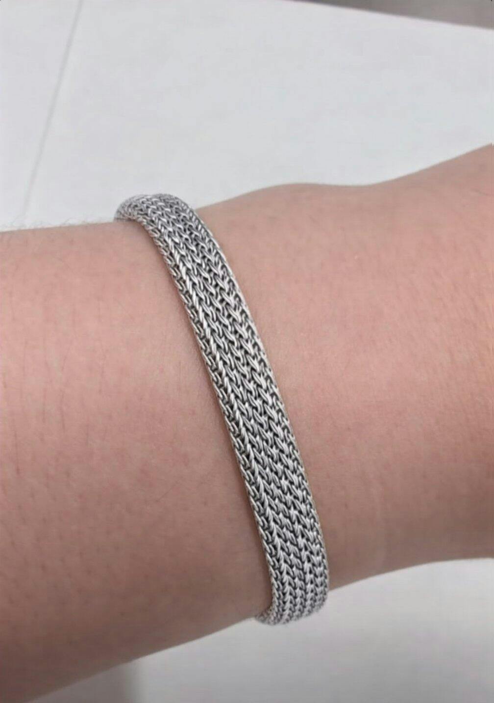 Fine ropes of sterling silver are beautifully woven again and accented with polished sterling silver and white sapphires in this charming, modern bracelet. Bracelet is 7 1/4 inches long and closes with a box clasp.