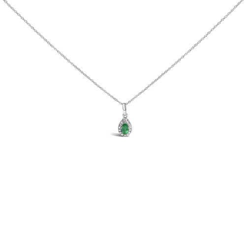 10K White Gold 5x3mm Gemstone and Diamond Accent Halo Pear Shape 18" Pendant Necklace (I-J Color, I1-I2 Clarity)