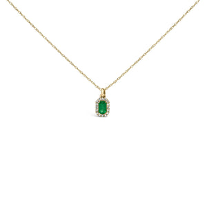 10K Yellow Gold 5x3mm Green Emerald and Diamond Accent Halo Octagonal Shape 18" Pendant Necklace (I-J Color, I1-I2 Clarity)