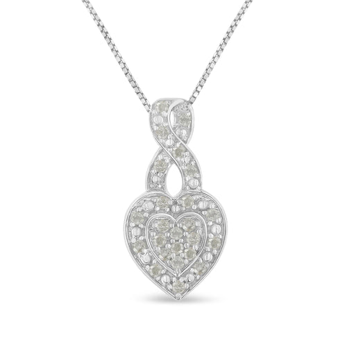.925 Sterling Silver 1.0 Ctw Diamond Shadow Open Heart Halo 18" Pendant Necklace (I-J Color, I1-I2 Clarity)