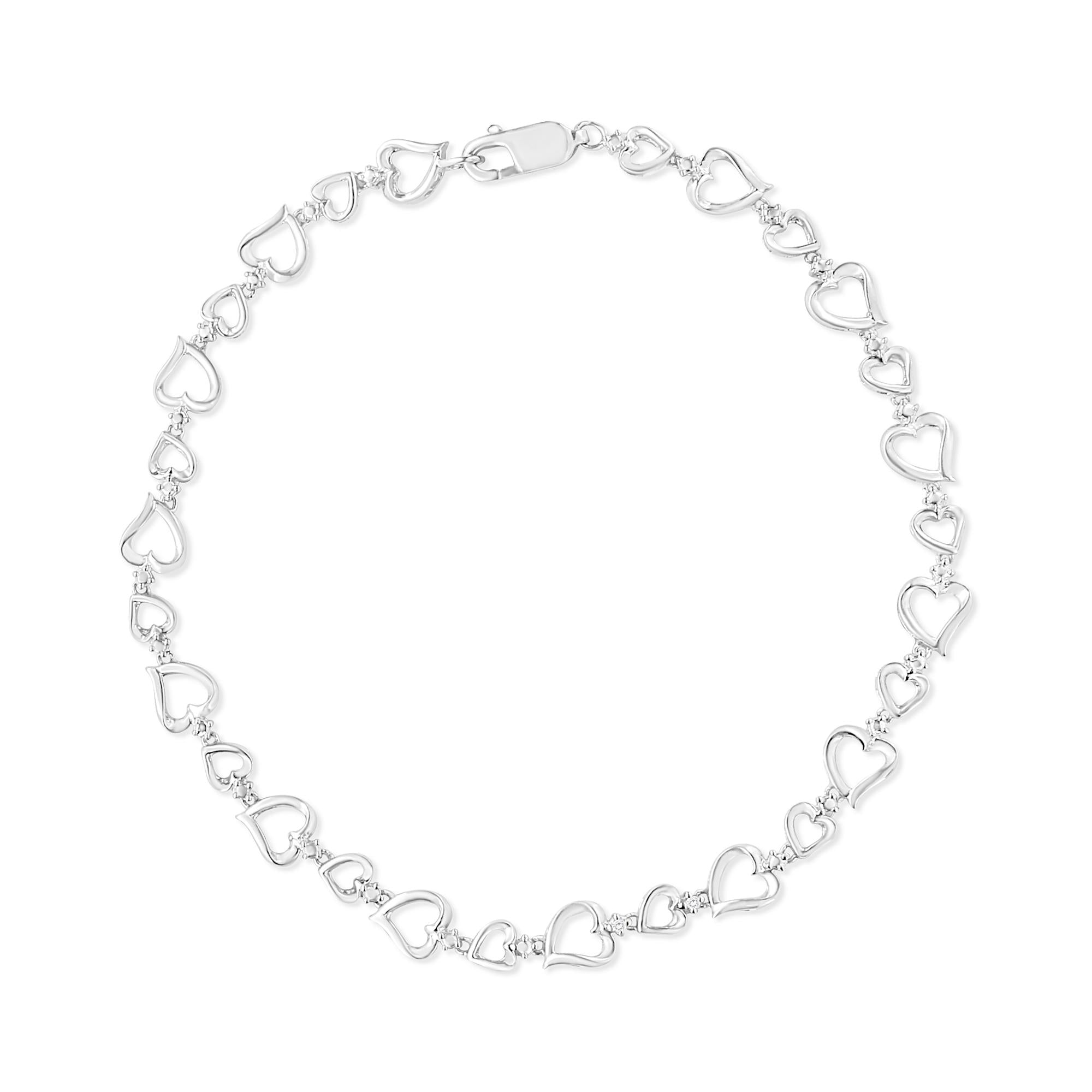 .925 Sterling Silver Prong Set Diamond Accent Alternating Heart Link Bracelet (I-J Color, I3 Clarity) - 7.25" Inches-0