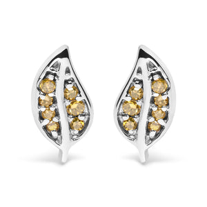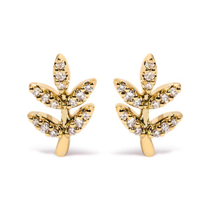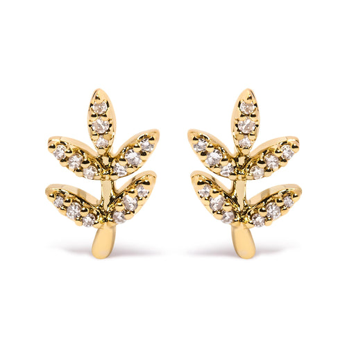 10K Yellow Gold 1/10 Cttw Diamond Accented Leaf and Branch Stud Earrings (H-I Color, I1-I2 Clarity)