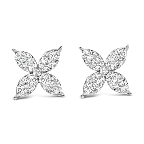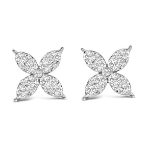 14K White Gold 1.0 Cttw Lab Grown Marquise Diamond 8 Stone Floral Leaf Stud Earrings (F-G Color, VS2-SI1 Clarity)