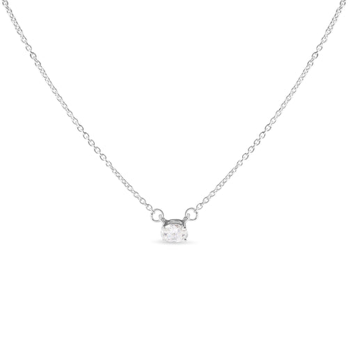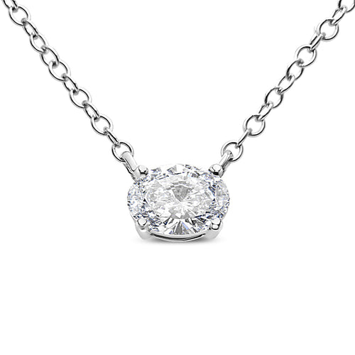 14K White Gold 1/4 Cttw Lab Grown Oval Solitaire Diamond East West 18" Pendant Necklace (G-H Color, VS2-SI1 Clarity)