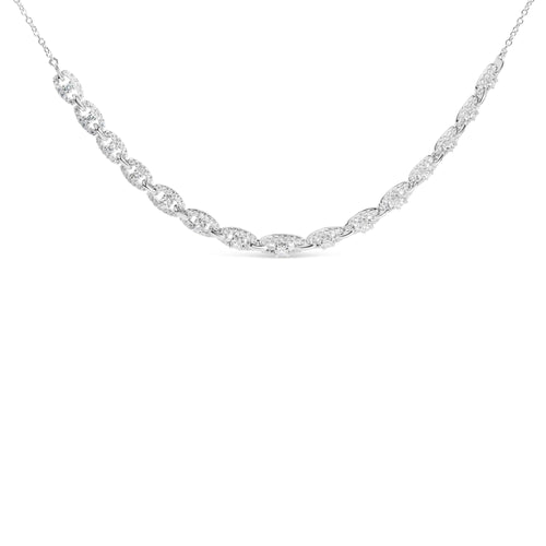 14k White Gold 1 5/8 Cttw Invisible Set Princess and Channel Set Baguette Diamond Curved Oval Shape Pendant Necklace (G-H Color, VS2-SI1 Clarity)