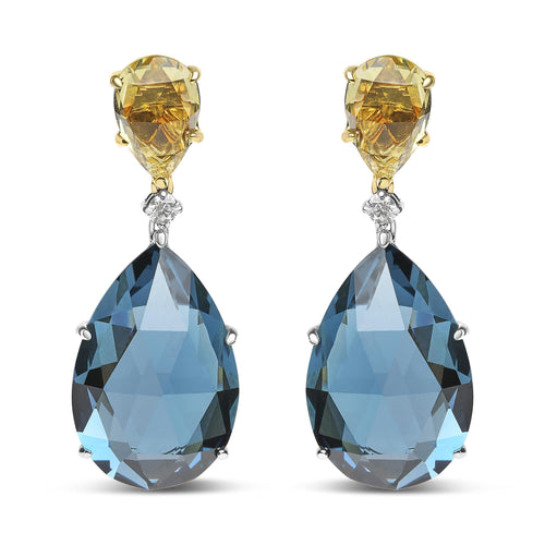 18K White and Yellow Gold 1/5 Cttw Diamond with Round Yellow Citrine and 20x15mm Pear Cut Black Onyx Gemstone Dangle Earring (G-H Color, SI1-SI2 Clarity)