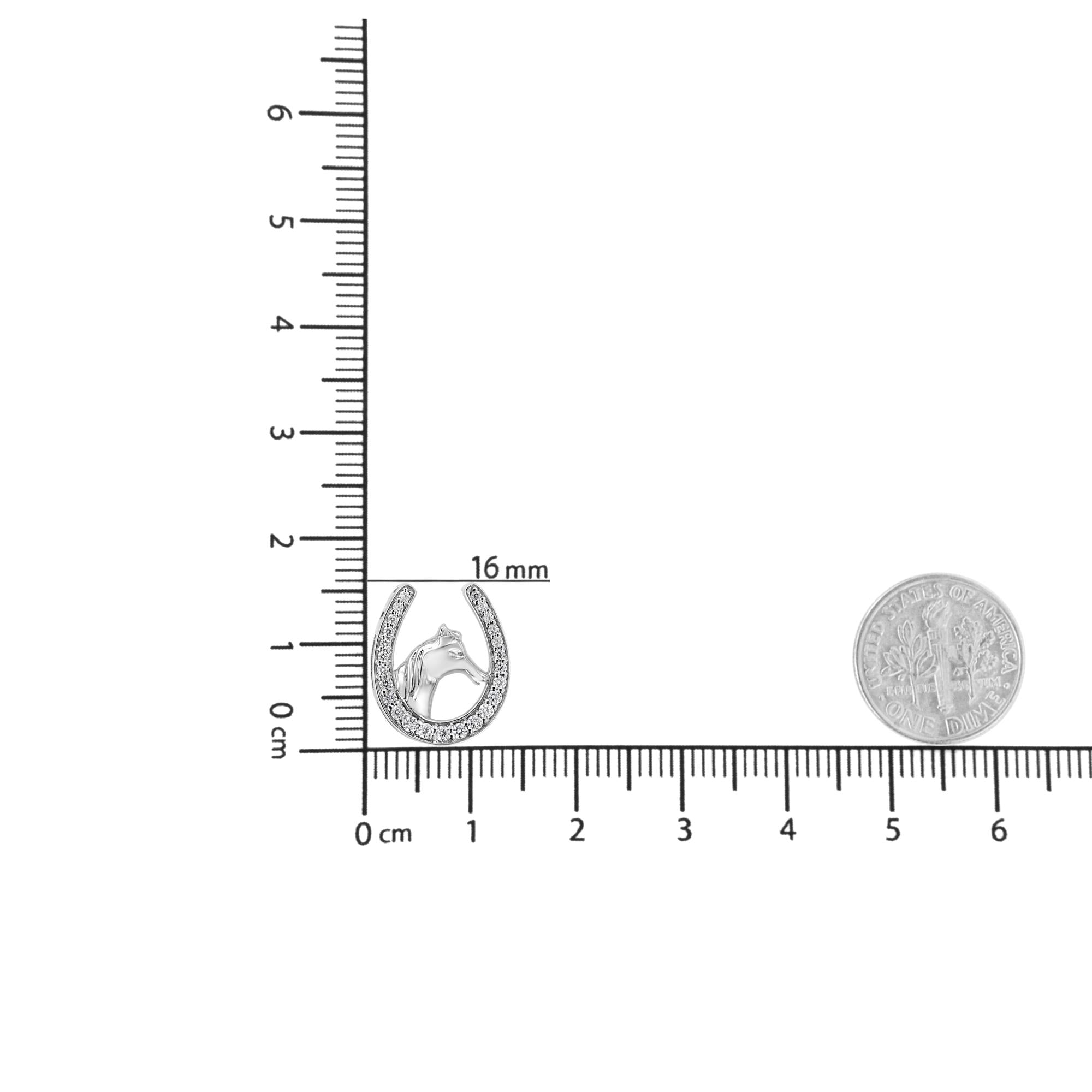 A sweet horseshoe pendant necklace that sparkles with round brilliant cut diamonds. The horse detail in the center, makes this the perfect choice for an equestrian. Crafted in sterling silver, it has a total diamond weight of 1/4 carat. The diamonds are promo quality, which are on the lowest on the diamond color and quality scale. Round-cut, promo quality diamonds are milky and cloudy in nature. They have asymmetrical ball shape and are filled with inclusions.