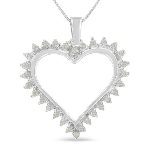 925 Sterling Silver 1/3 Ctw Diamond Heart and Lightning Bolt Pendant Necklace (H-I Color, SI1-SI2 Clarity) - 18" Inches