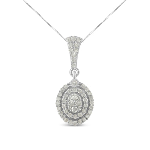 .925 Sterling Silver 1/3 Cttw Round-Cut Diamond Open Circle Halo 18" Pendant Necklace (I-J Color, I2-I3 Clarity)