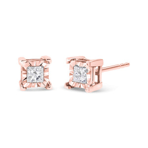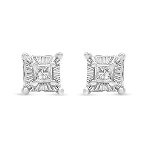 .925 Sterling Silver Miracle Set Princess-cut Diamond Solitaire Stud Earrings (H-I Color, SI2-I1 Clarity)