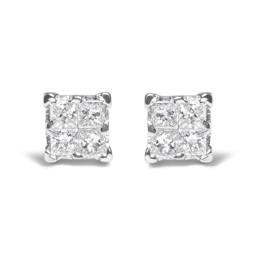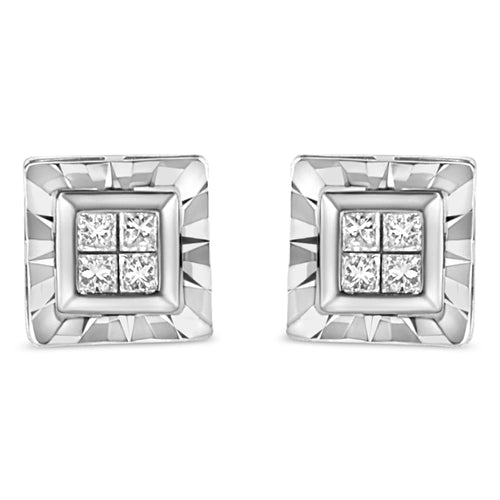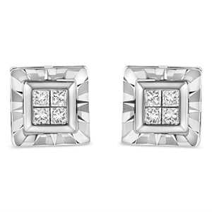 .925 Sterling Silver 1/6 Cttw Invisible Set Princess-Cut Diamond Quad Composite Stud Earrings (H-I Color, I1-I2 Clarity)