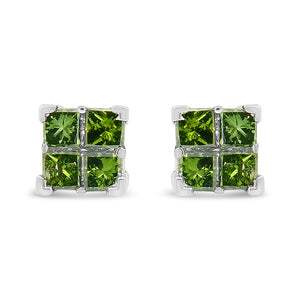 .925 Sterling Silver Treated Green Princess-cut Diamond 4 Stone Composite Quad Stud Earring (Green Color, I1-I2 Clarity)