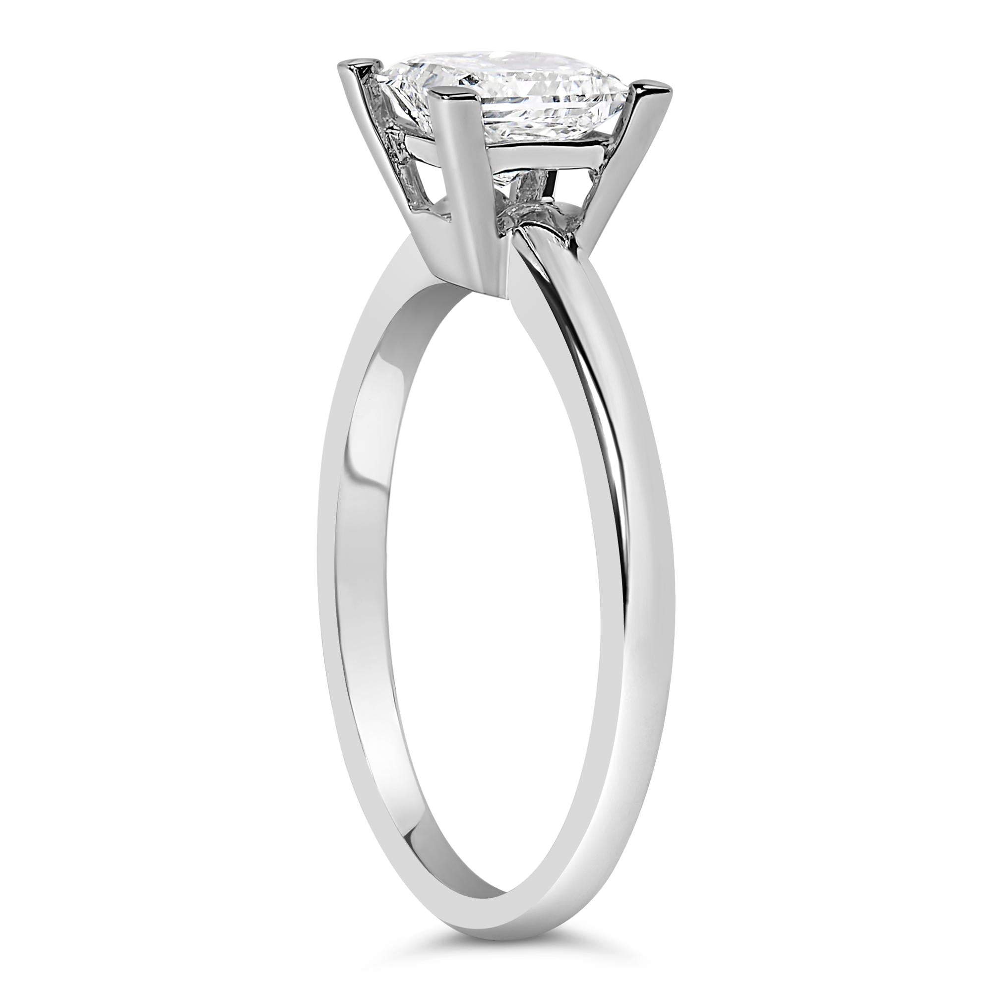 Embodying elegance and the promise of a beautiful future, this 14K white gold engagement ring captures hearts with its singularly brilliant one-carat princess-cut lab-grown diamond. With an impeccable F-G color and VS1-VS2 clarity, its radiance is unmistakable, reflecting not just light but the depth of your commitment. Expertly secured in a four-prong setting, the diamond stands as a testament to enduring craftsmanship. The sleek band, adorned with rhodium plating, enhances the diamond's white fire, achieving an exquisite balance of modern refinement and timeless allure. Perfect for those who value sustainable luxury, this piece not only symbolizes love but also a conscious choice for a better world.