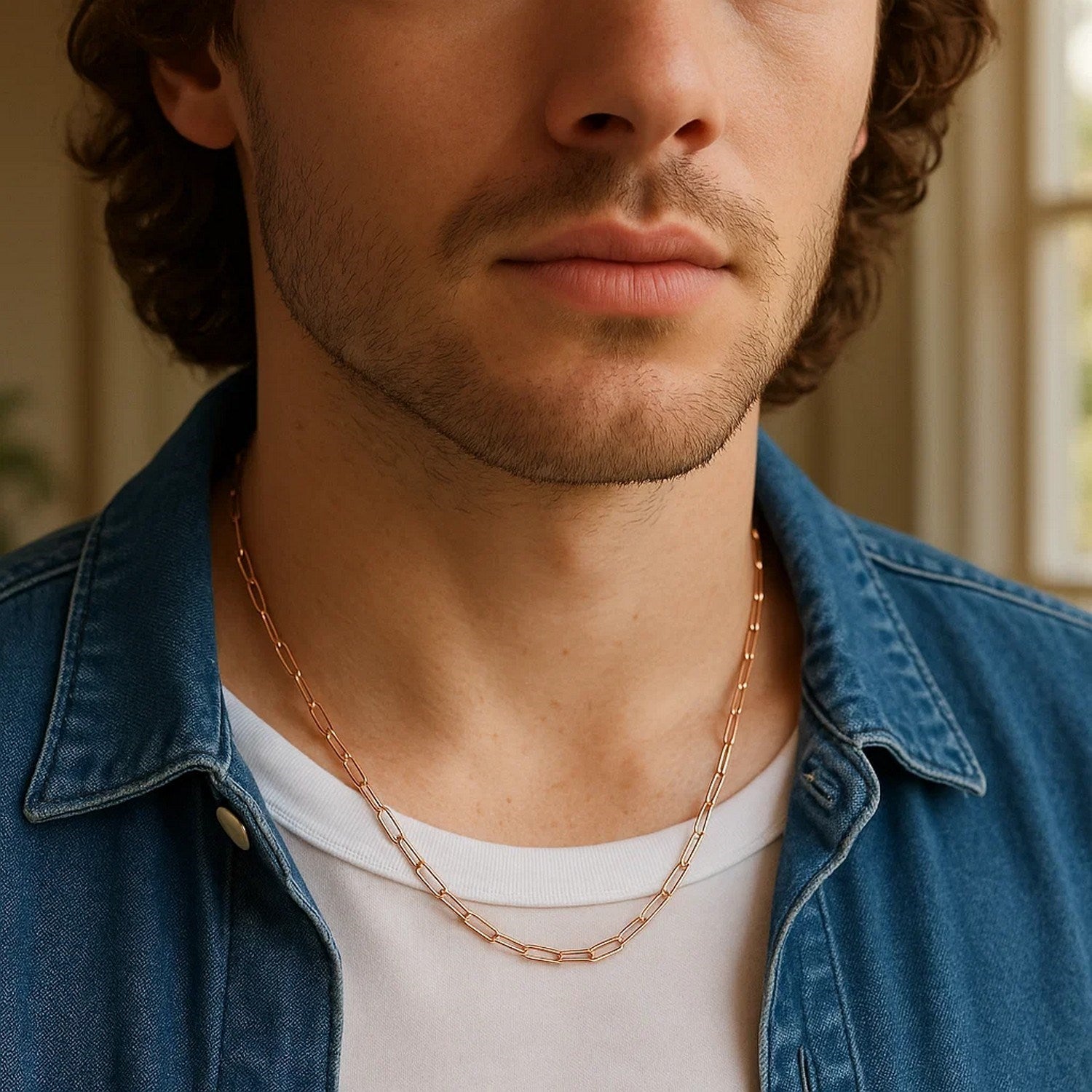 Beautiful, modern links of polished 14K rose gold combine to create this gorgeous paperclip chain. Chain has 2.1mm wide links and closes with a lobster clasp.