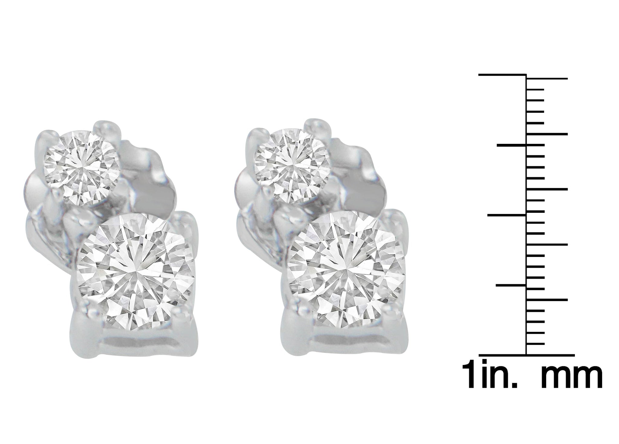 Decorate your earrings like a star with these beautiful dangle diamond earrings. Brilliant choice to wear with any outfit, the lovely pair of earrings is composed of 14 karats white gold. Each of the earrings features two round cut diamonds in a prong setting, which makes them sparkle and certain to make you look unique.