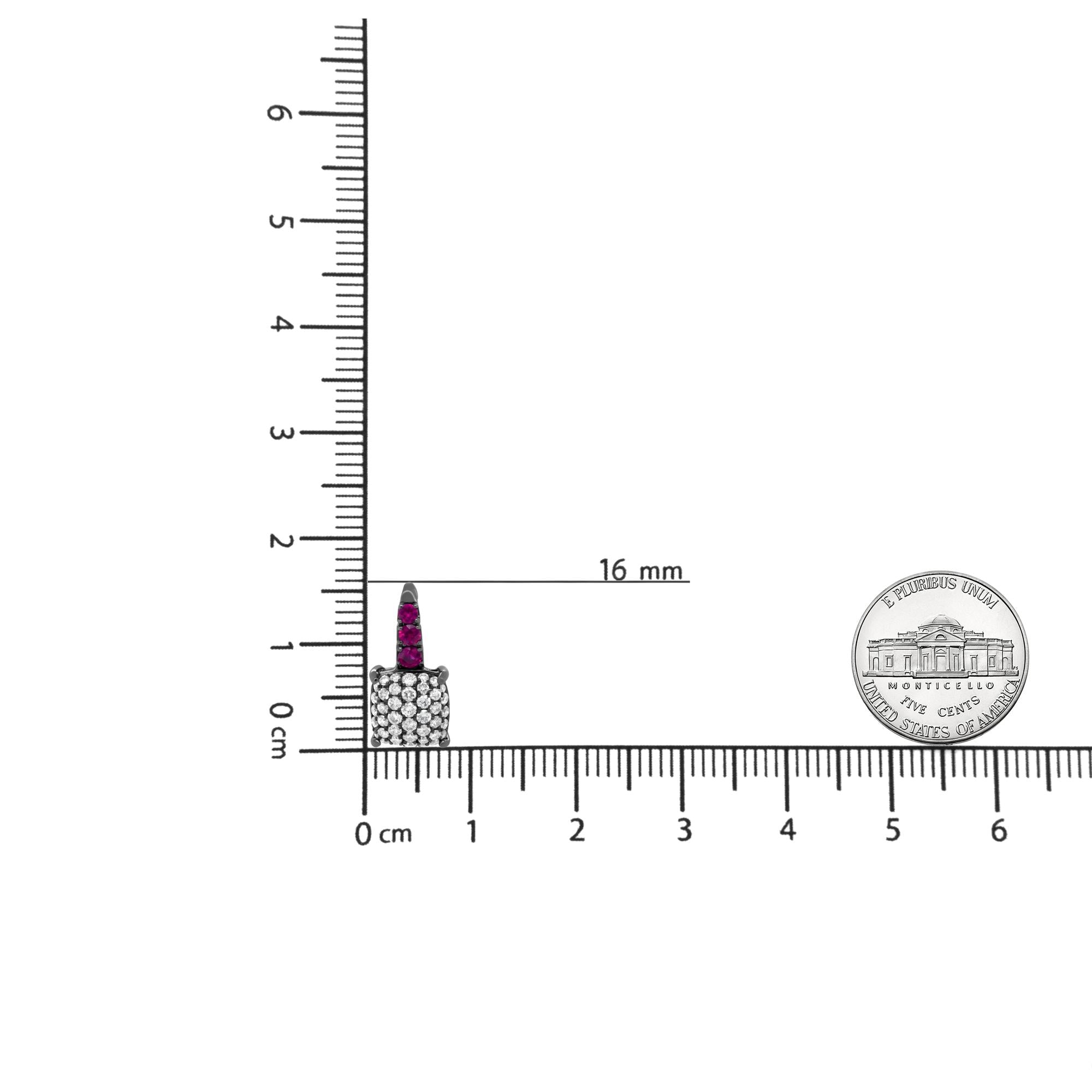 Black Rhodium Plated 18K White Gold 7/8 Cttw Round Diamond and Graduated Red Ruby Drop Earrings (F-G Color, VS1-VS2 Clarity)-2