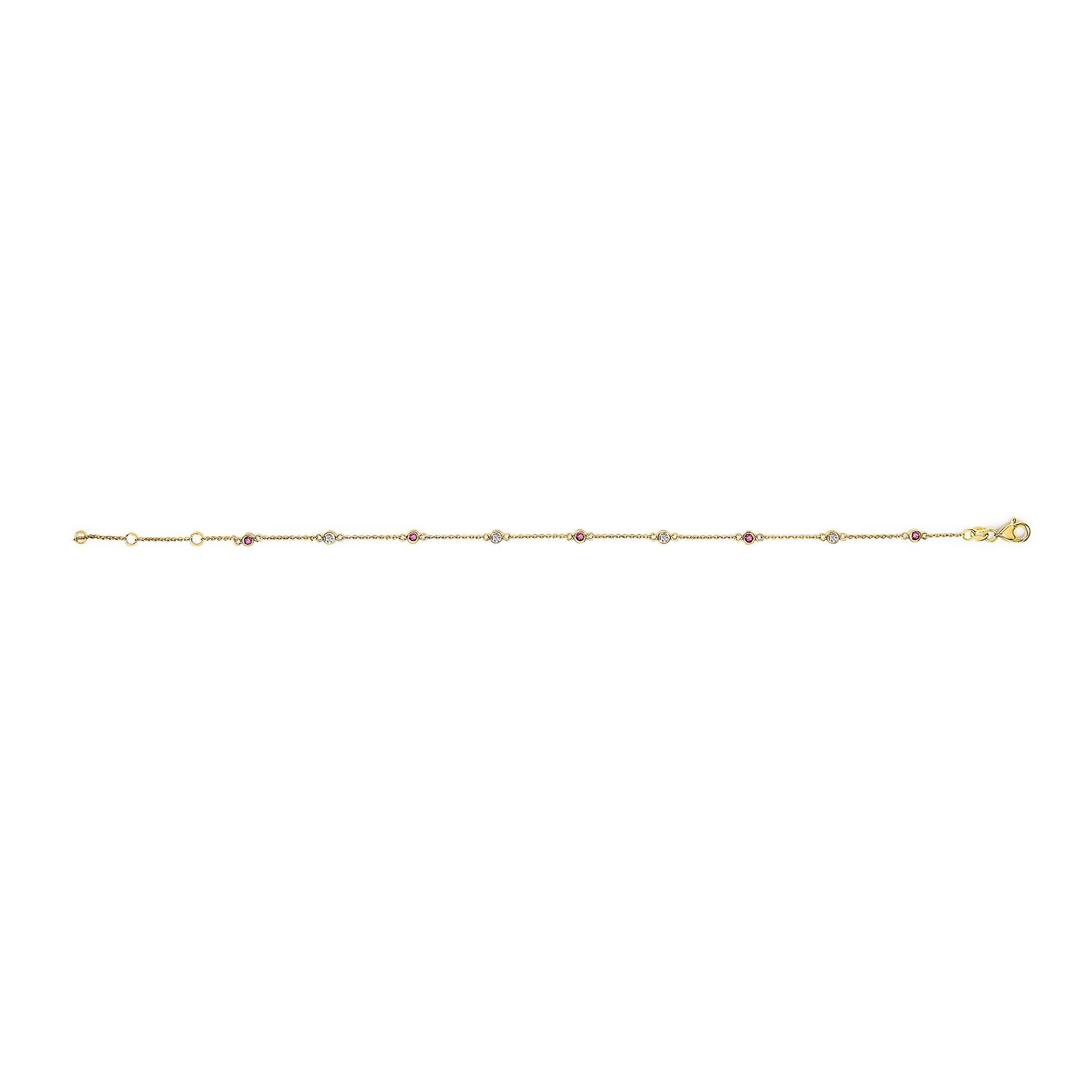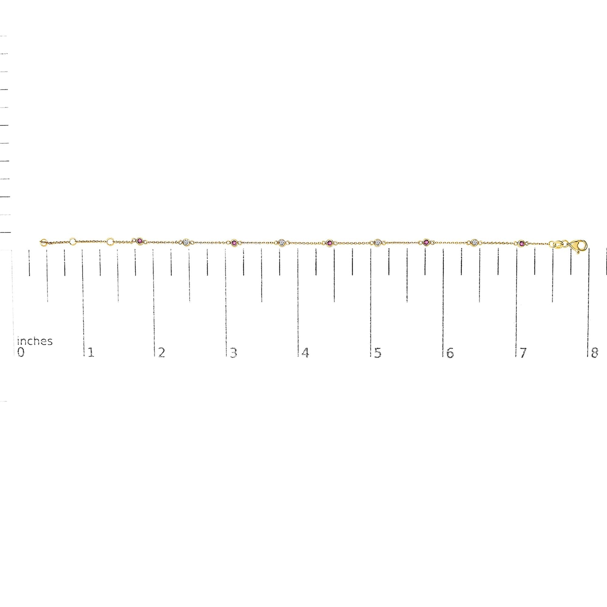14K Yellow Gold Alternating Red Ruby and White Diamond Bezel Station Chain Bracelet (I-J Color, SI2-I1 Clarity) - 8" Inches-1