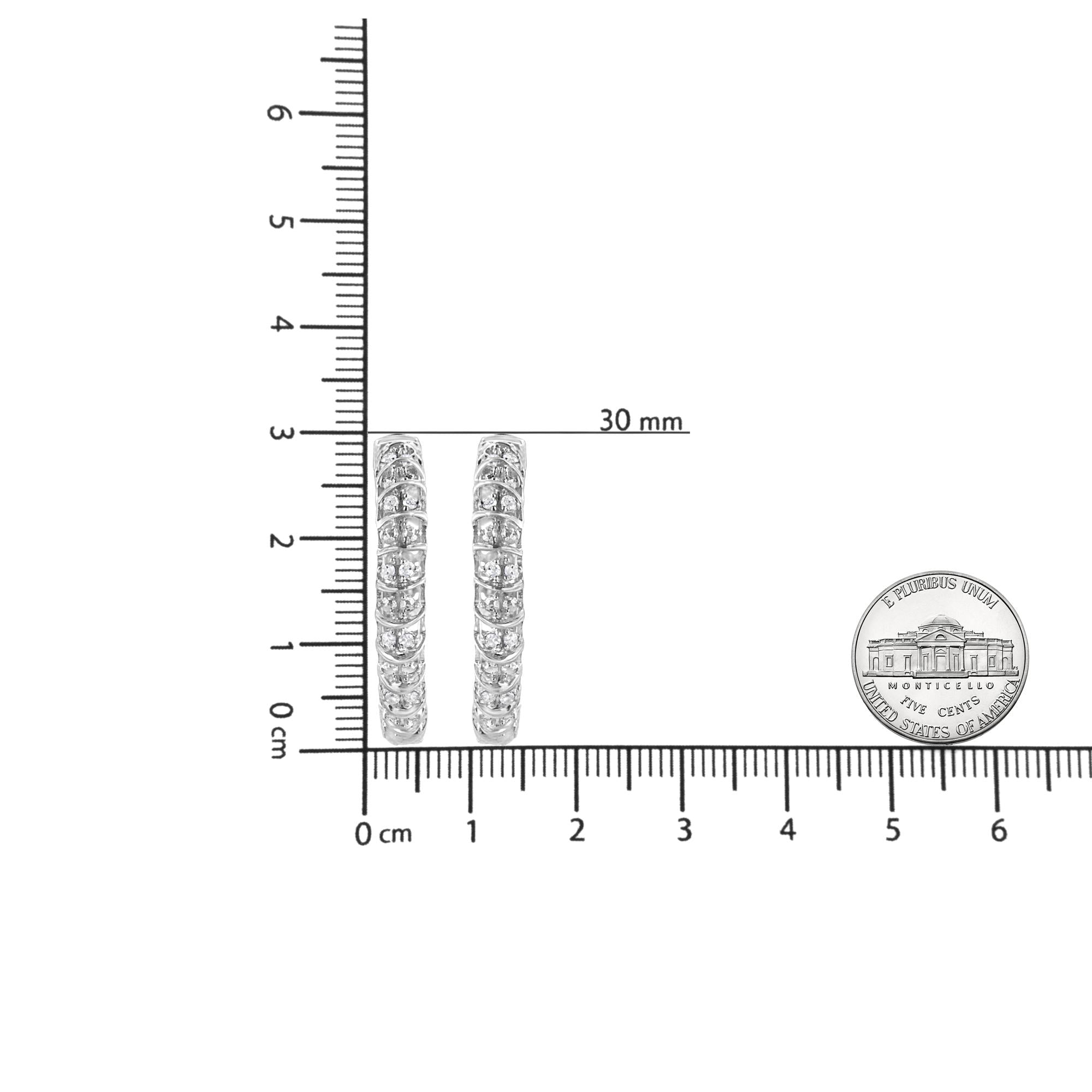 Hoop earrings will always have a special place in our hearts, but this pair takes it to the next level. They feature a cage-like design in .925 Sterling Silver that holds 44 round natural diamonds in a prong setting that total up to 1/2 carat diamond total weight. The stones strategically surround the hoop, radiating shine in every direction. Whether you’re going for a date night or a formal event, these earrings are a versatile option that’s fail-proof. The pair is secured with latch backs.
