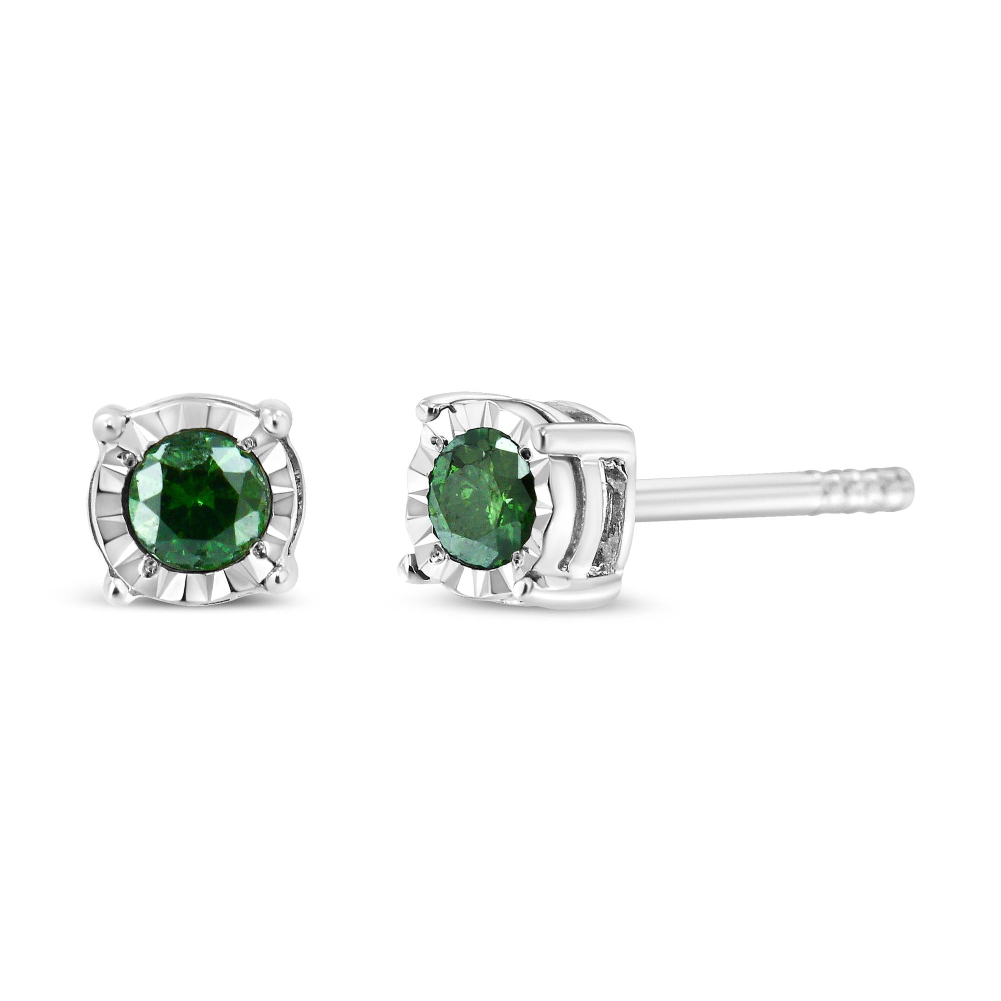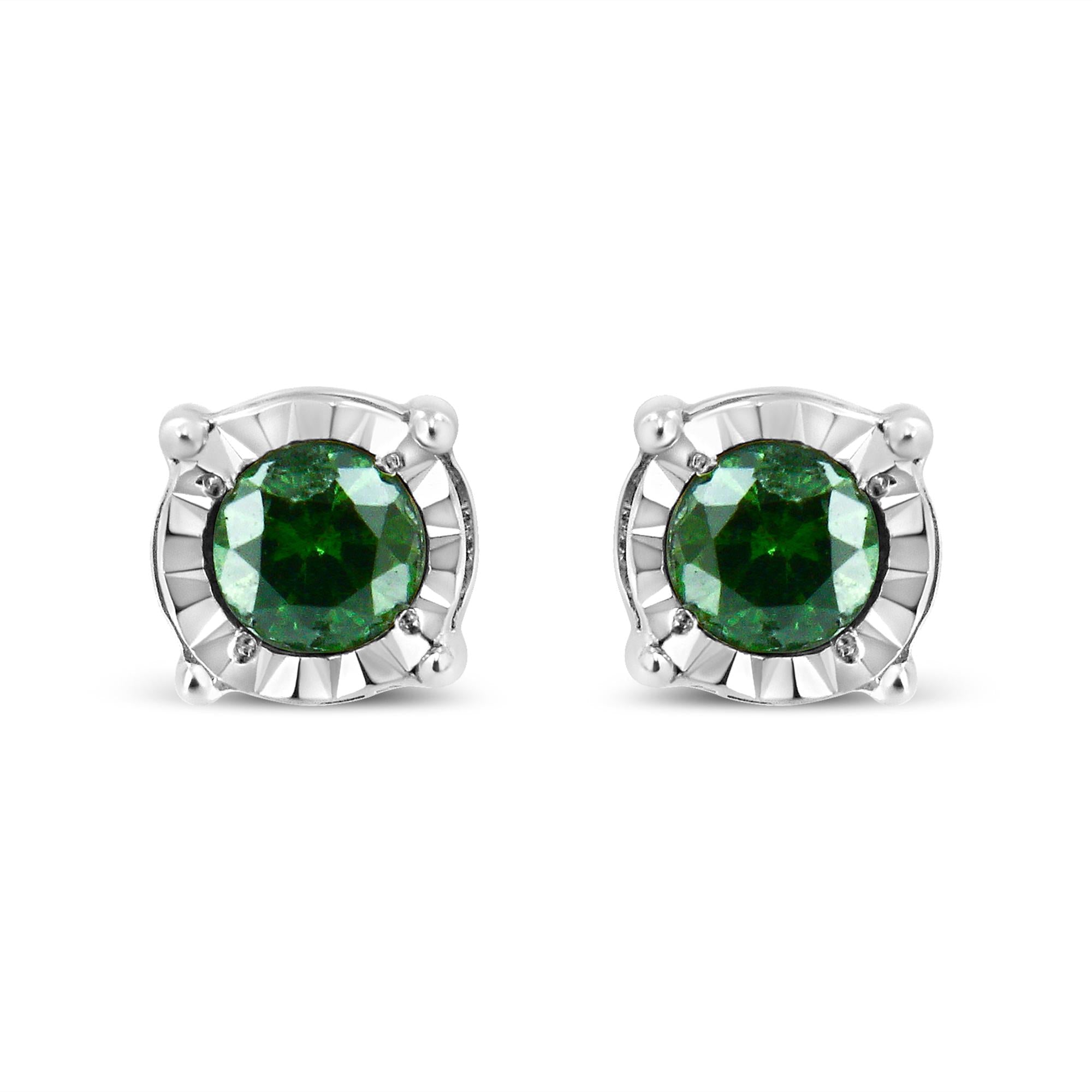 Add some glam to your everyday look with these dazzling stud earrings. Fashioned in a round shape, the earrings are composed of alluring sterling silver. Finished off with astonishing brilliance, the pair of earrings are articulated with treated green rose cut diamond solitaires to lend luxurious appeal.