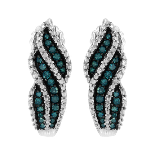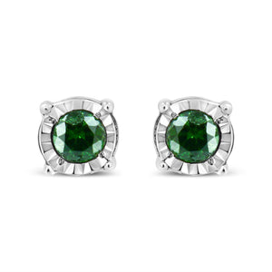 .925 Sterling Silver 0.15 Cttw Round Brilliant-Cut Green Diamond Miracle-Set Stud Earrings (Fancy Color-Enhanced, I1-I2 Clarity)