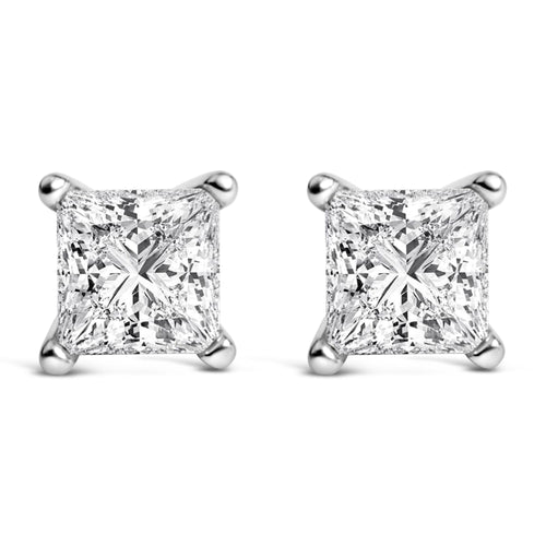 AGS Certified Princess-Cut Square Diamond 4-Prong Solitaire Stud Earrings in 14K Gold (L-M Color, I1-I2 Clarity)