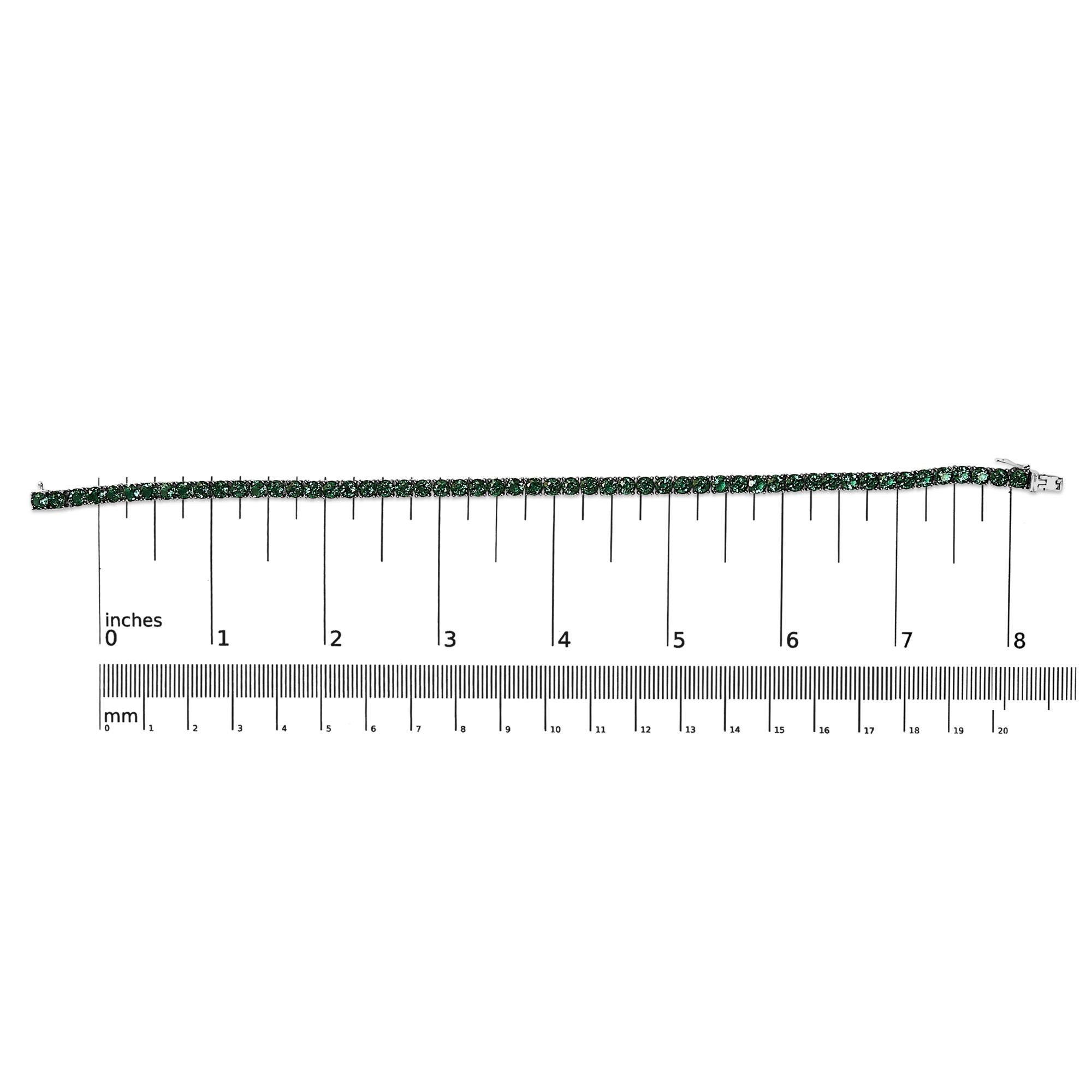 Immerse yourself in the timeless elegance of this .925 sterling silver tennis bracelet, delicately plated in rhodium for a lustrous finish that speaks to the sophistication of its wearer. Made for wrists up to 8.5 inches, this piece captures the essence of classic design with a modern twist, featuring exquisite, lab-created green emeralds. Each 4x4 mm gemstone, treated with oil for enhanced clarity and color, is impeccably set in a 4-prong setting highlighted by striking black rhodium details. This bracelet melds durability, luxury, and conscious creation, making it a perfect choice for those who value ethical elegance and pristine craftsmanship.