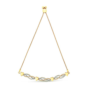 14K Yellow Gold Plated .925 Sterling Silver 1/10 Cttw Diamond Wave and Hearts Bolo Bracelet (I-J Color, I2-I3 Clarity) - 4"-10" Adjustable
