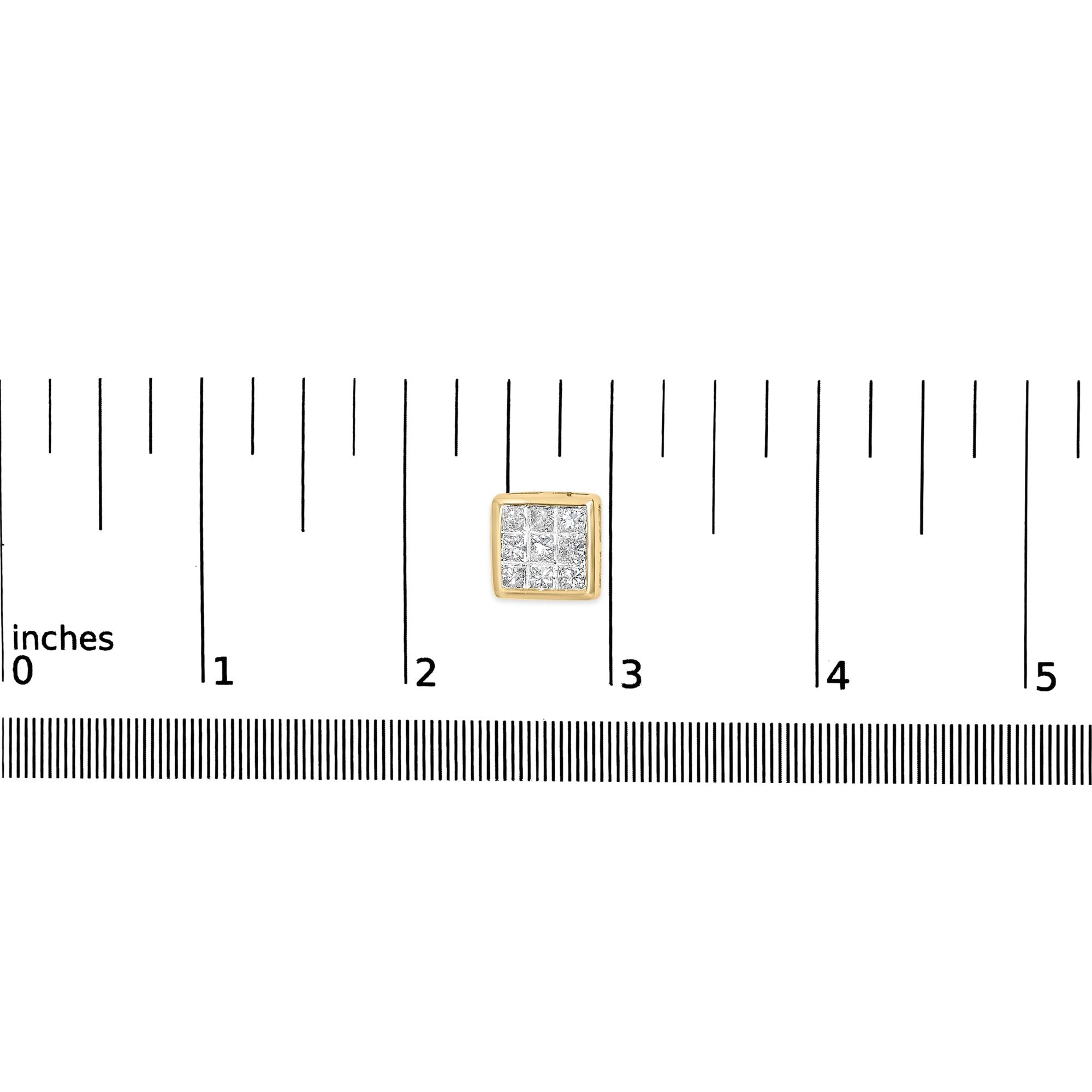 Introducing a captivating masterpiece that beautifully adorns your ears with a touch of enchantment - these 14K Yellow Gold Princess Cut Diamond Composite Stud Earrings. Crafted with utmost precision, these earrings feature a stunning array of 18 natural diamonds, totaling 1.0 carat in weight. The princess cut diamonds, with their mesmerizing sparkle, are elegantly set in an invisible setting, creating a seamless and radiant display. The warm glow of the 14K yellow gold adds a touch of sophistication to these exquisite earrings. With screw backs, these earrings ensure a secure and comfortable fit, making them perfect for everyday wear or special occasions. Designed exclusively for women who appreciate timeless elegance, these earrings are a symbol of grace and refinement.