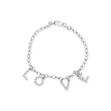 Envelop your wrist in the essence of romance with the exquisite 10k white gold bracelet, a testament to craftsmanship and elegance. This charming accessory is adorned with the word 'LOVE,' with each letter delicately encrusted with natural diamonds totaling 1/6 carat. The diamonds, boasting H-I color and I1-I2 clarity, twinkle with a subtle yet captivating glimmer, reflecting the light beautifully. Enhanced with a rhodium-plated finish, this bracelet not only promises luster but also durability. Measuring 7 inches, it drapes gracefully on the skin, secured by a robust lobster claw clasp. Perfect for everyday wear or special occasions, this bracelet invites you to carry the universal symbol of love gracefully around your wrist, making it a truly heartfelt gift or a personal treasure.