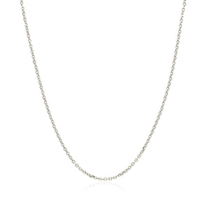 This cable chain comes in 10k white gold and has a width of 1.10 millimeters.