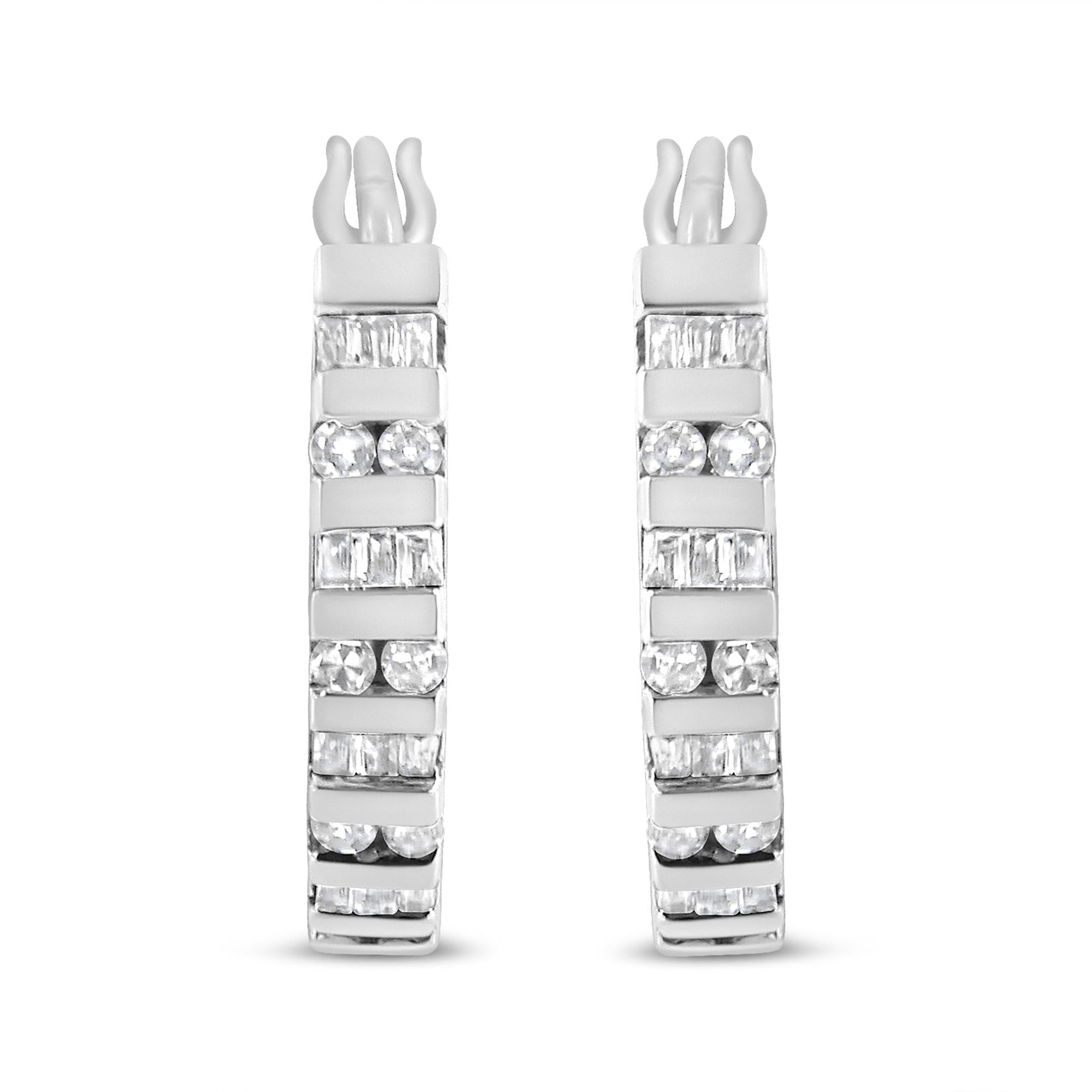 Accentuated by stunning baguette diamonds, these hoop earrings are ready to bring a touch of elegance to your look. Made of 10k yellow gold, these earrings come with a clip on mechanism to allow you a secure fit. They're embellished with 1.00 c.t. of natural round and baguette-cut diamonds. Be ready to be the center of attention at dinner parties with this pair of gorgeous hoop earrings. These earrings come with a clip on mechanism for a safe and secure fit on your ears.