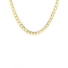 This curb link chain comes in 10k yellow gold and has a width of 4.7 millimeters.