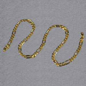 This lite Figaro chain comes in 10k yellow gold and has a width of 5.60 millimeters.