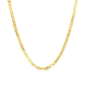 This mariner link chain comes in 10k yellow gold and has a width of 2.3 millimeters.