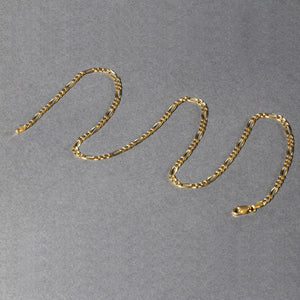 This solid Figaro chain comes in 10k yellow gold and has a width of 2.60 millimeters.