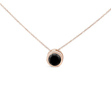 Immerse yourself in the opulence of sophistication with this exquisite necklace, where a 7.0-carat treated black diamond, of natural origin, takes center stage. Its deep, opaque hue, enriched through careful treatment, contrasts stunningly against the warm embrace of 14K rose gold. Encased in a robust bezel setting, this round-cut gem exudes the essence of modern luxury. Hanging gracefully from an 18-inch cable chain of equal opulence, its minimalistic charm is designed for the discerning individual. A secure spring-ring clasp whispers promises of everlasting elegance. This piece is not just a testament to superior craftsmanship but a gateway to a lifestyle replete with understated elegance, making it an unmissable treasure in your collection.