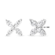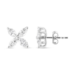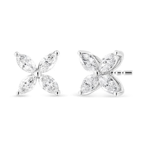The classic arrangement of 8 stunning, lab grown marquise diamonds make these studs an instant classic. These studs are crafted out of stunning 14k white gold and set with 8 high-quality, genuine marquise diamonds in a floral arrangement. The earrings are crafted with a push back mechanism for a secure and comfortable fit on your ear. A simple yet timelessly brilliant design that is perfect for any occasion.