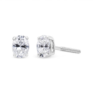 Add a touch of shine to your everyday look with these beautifully classic 1.00 cttw diamond solitaire earrings. These studs are crafted in 14k white gold, a metal that will stay tarnish free for years to come. The diamonds are lab-grown and oval shape. They're embellished in a classic 4-prong setting and have a VS2-SI1 clarity. These magnificent earrings will look stunning on your ears and be the perfect addition to your jewelry collection. They come with a screw-on mechanism for a safe and secure fit on your ears.