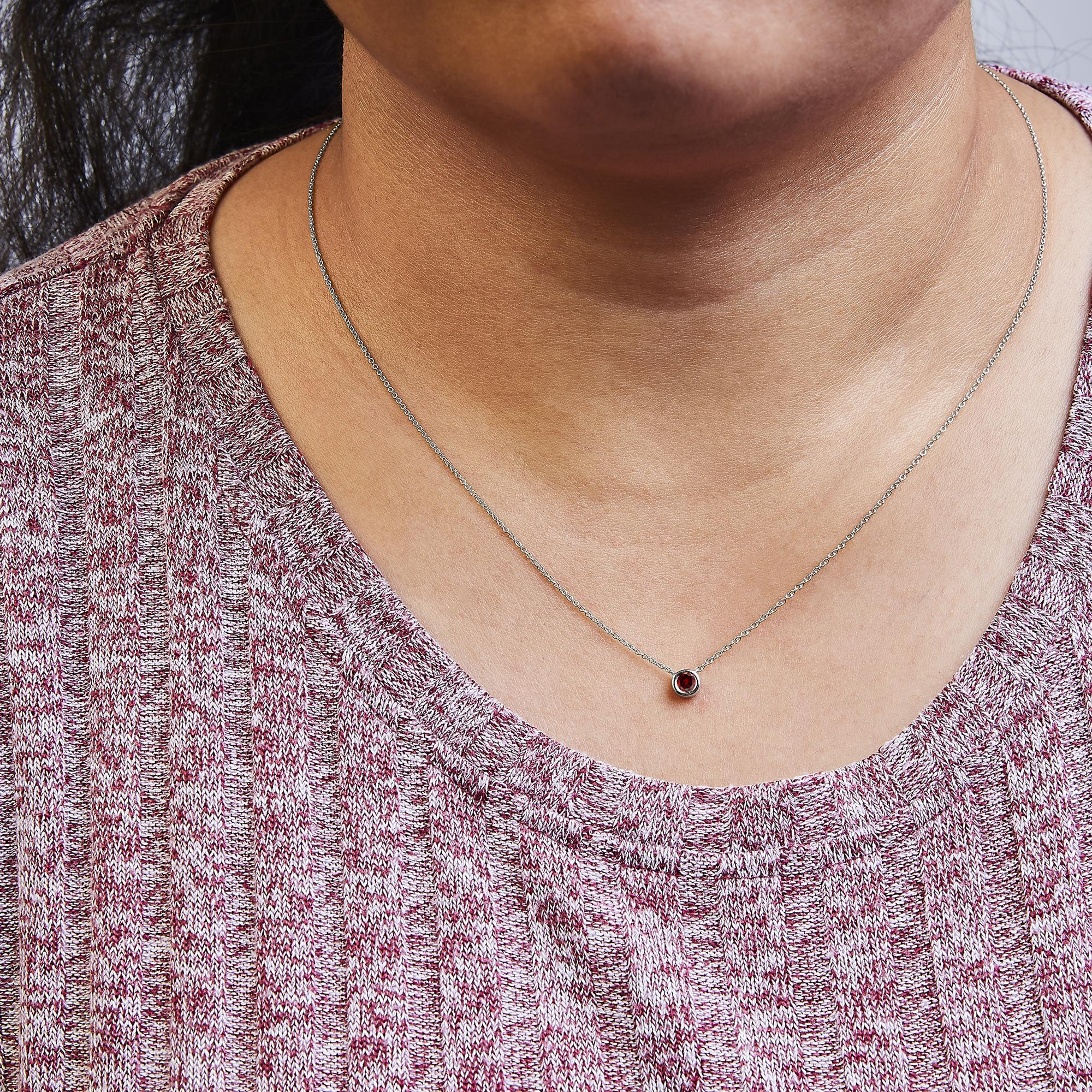 Immerse yourself in the radiant allure of sophistication with this exquisite pendant necklace, delicately crafted from rhodium-plated 14K white gold. Suspended gracefully on an 18-inch cable chain secured by a spring ring clasp, this necklace boasts a lustrous, bezel-set, red lab-grown diamond that captures the essence of refined elegance. Chosen for its remarkable VS1-VS2 clarity, this 1/2 carat gem dazzles with a fiery intensity. The minimalist design accentuates the diamond's vibrant hue, making it a striking centerpiece that beckons the eye. Perfect for those who cherish contemporary elegance, this pendant promises to adorn your neck with a touch of chic luxury and a burst of captivating color, enhancing both everyday wear and special occasions.