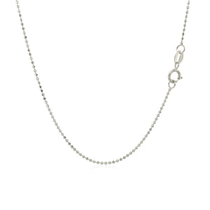 This diamond cut bead chain comes in 14k white gold and has a width of 0.90 millimeters.