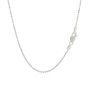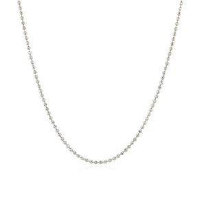 This diamond cut bead chain comes in 14k white gold and has a width of 1.10 millimeters.