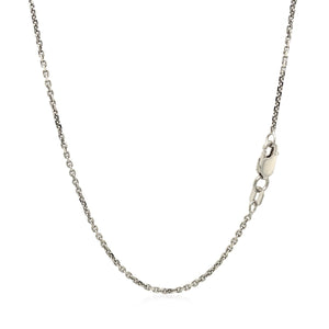 This diamond cut cable link chain comes in 14k white gold and has a width of 1.30 millimeters.
