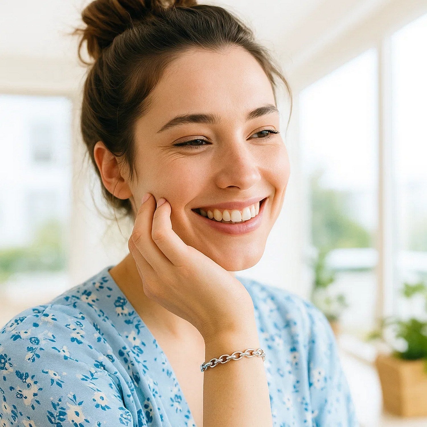 This oval rolo bracelet comes in 14k white gold and has a width of 4.6 millimeters. Secured with a lobster clasp.
