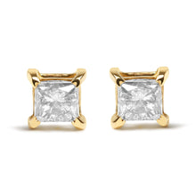 Discover the timeless elegance encapsulated in these exquisite stud earrings, crafted from .925 sterling silver and bathed in sumptuous 10K yellow gold. Each piece cradles a stunning, naturally sourced princess cut diamond totaling 5/8 Cttw, secured firmly by a classic four-prong setting. The luminescence of the diamonds, with a J-K color and I2-I3 clarity, radiates a subtle yet captivating sparkle, reflecting the depths of your refined taste. Designed for resilience and comfort, the push-back closure ensures a secure fit, allowing these treasures to grace your ears seamlessly from day into night. Perfect for any occasion or as a cherished gift, these earrings promise to be a lasting addition to any jewelry collection, elevating every moment with their understated glamour.