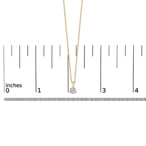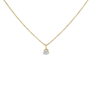 Envelop your neckline with the mesmerizing sparkle of this exquisite pendant necklace, masterfully crafted from lustrous 14K yellow gold. At its heart lies a resplendent natural round brilliant diamond, cradled securely in a three-prong Martini setting designed to amplify its luminous brilliance. Suspended from a svelte 18-inch cable chain, which slides gracefully through a passthrough bail, this piece is a paragon of elegance and simplicity. The golden hues of the setting superbly accentuate the G-H color and SI2-I1 clarity of the diamond, ensuring it stands out with an ethereal glow. Fastened securely with a spring ring clasp, this necklace promises not only to captivate but to enchant for generations, seamlessly fitting into a lifestyle of understated luxury and timeless charm.
